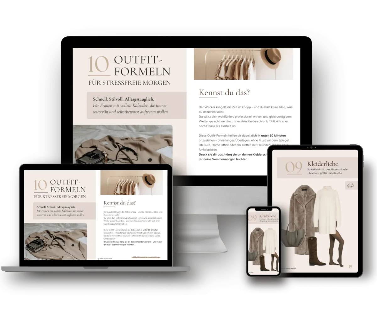 Du startest deinen Tag ohne Stress vor dem Kleiderschrank. Statt zu grübeln, greifst du einfach zur passenden Outfit-Formel – und fühlst dich sofort stilvoll, professionell und ganz du selbst.